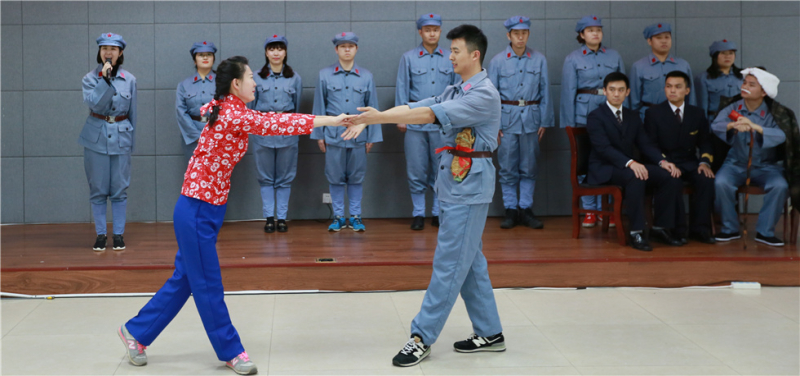在基地总第744期暨东航集团2015年度团干部培训班结业式上,学员们编排了一出动情的情景剧《穿越时空的信仰》。