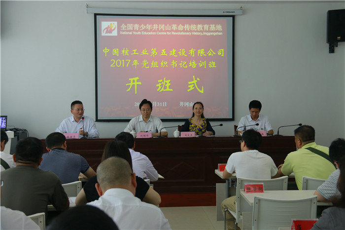 5月31日,中国核工业第五建设有限公司2017年党组织书记培训班在全国青少年井冈山革命传统教育基地开班。中国核工业第五建设有限公司党委副书记、纪委书记刘弼华出席开班式并讲话,基地管理中心党委副书记、纪委书记、副主任刘文兰致辞并为学员代表授旗。来自中国核工业第五建设有限公司的32名党组织书记将参加为期5天的培训。