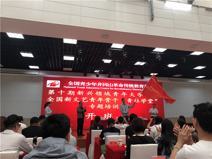 6月25日,第十期新兴领域青年大学习暨全国新文艺青年骨干“青社学堂”专题培训班在全国青少年井冈山革命传统教育基地开班。基地管理中心党委委员、副主任朱迎致欢迎辞并为学员代表授旗,团中央社会联络部联络培训处干部郭冠斌讲话。来自全国各地的100名新文艺青年骨干将参加为期6天的培训。